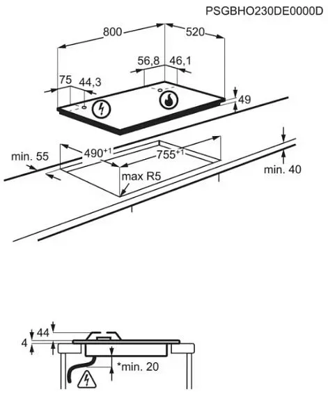 | Габариты ниши (ВхШхГ) | 40х755x490 мм |