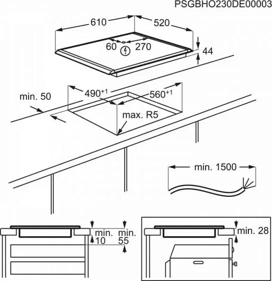 Габариты ниши (ВхШхГ) 28х560х490 мм