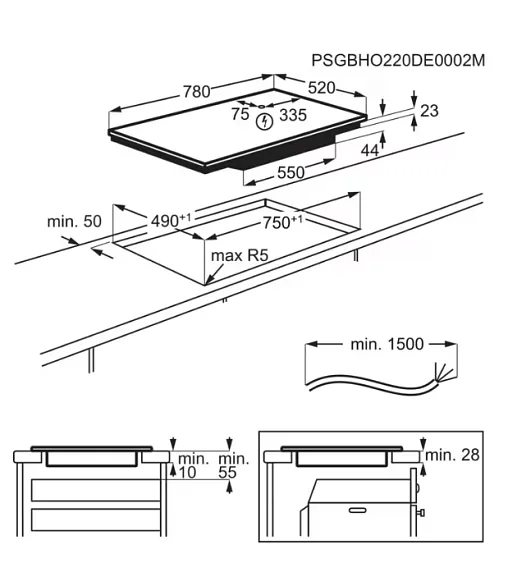 Габариты встраивания (ВхШхГ) 28x750x490 мм