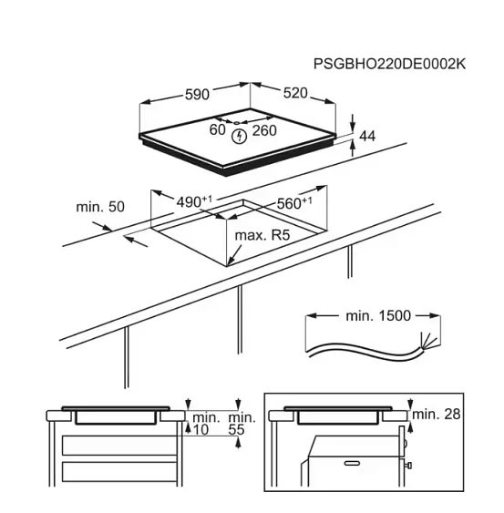 Габариты ниши (ВхШхГ) 28х560х490 мм