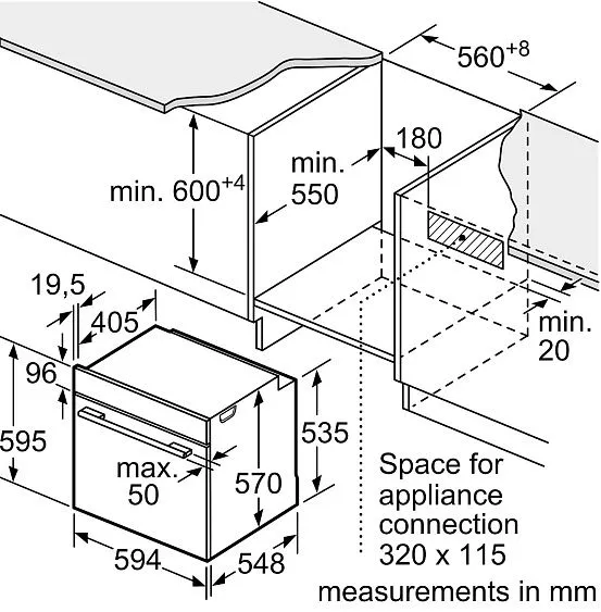 | Габариты ниши (ВхШхГ) | 585-595/600-604x560-568x550 мм |
