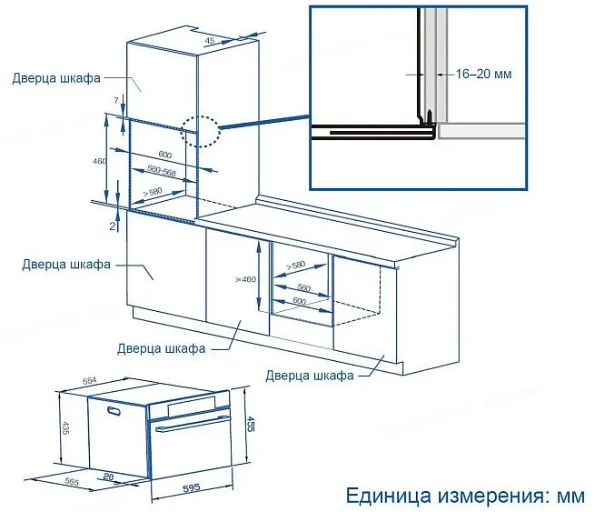 | Габариты ниши (ВхШхГ) | 460х560-568х580 мм |