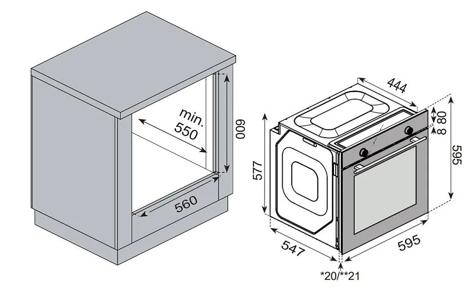 | Габариты ниши (ВхШхГ) | 600х560х550 мм |