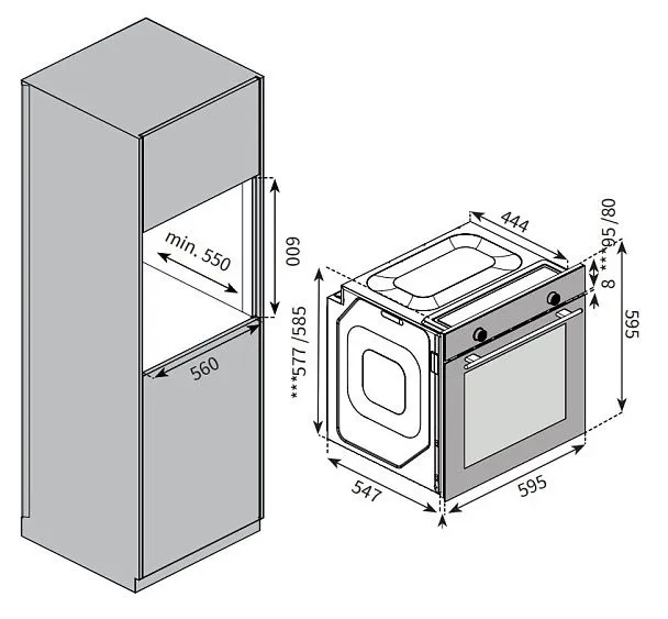 | Габариты ниши (ВхШхГ) | 600х560х550 мм |