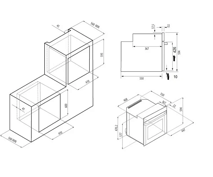 Габариты ниши (ВхШхГ) 595/600х410х560 мм