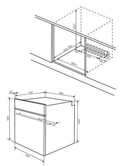 Габариты ниши (ВхШхГ) 600-608х560-568х550 мм