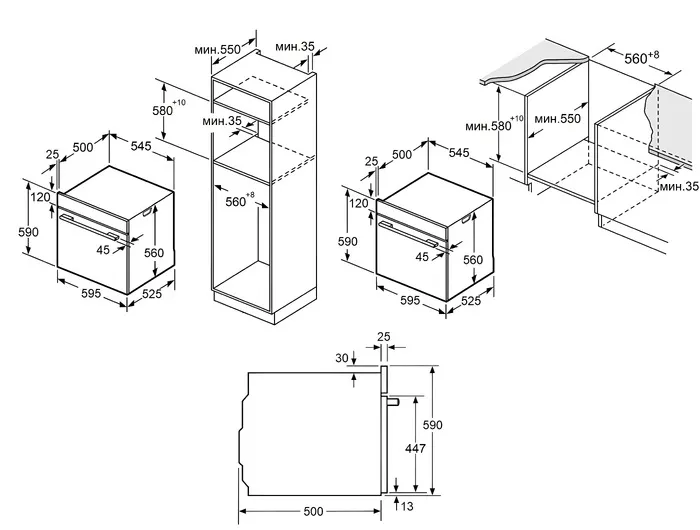 | Габариты ниши (ВхШхГ) | 580х560х550 мм |