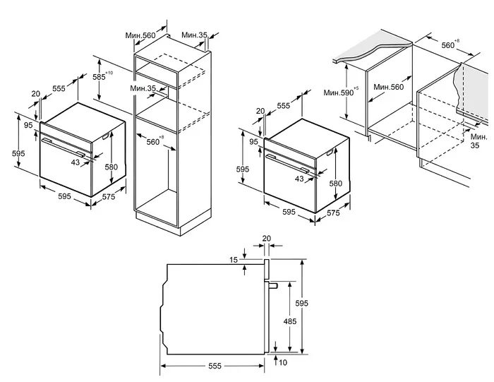 | Габариты ниши (ВхШхГ) | 585-595х560-568х560 мм |