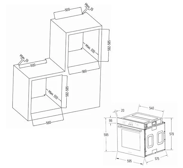 | Габариты ниши (ВхШхГ) | 585x560x555 мм |