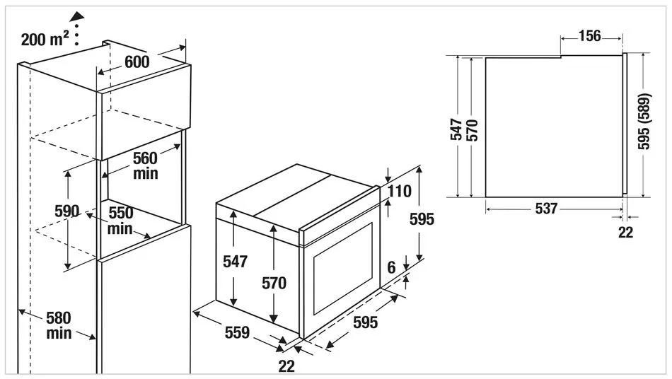 | Габариты ниши (ВхШхГ) | 590x560x550 мм |