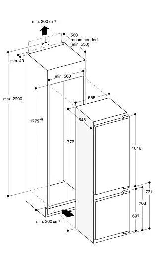 Габариты ниши (ВхШхГ) 2200х560х550 мм