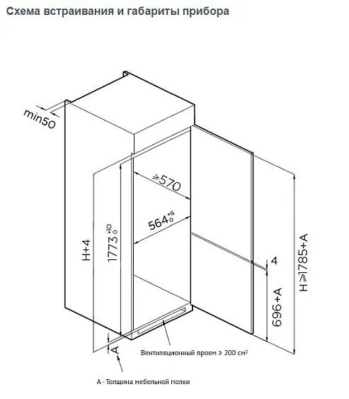| Габариты встраивания (ВхШхГ) | 1773-1783х564х570 мм |