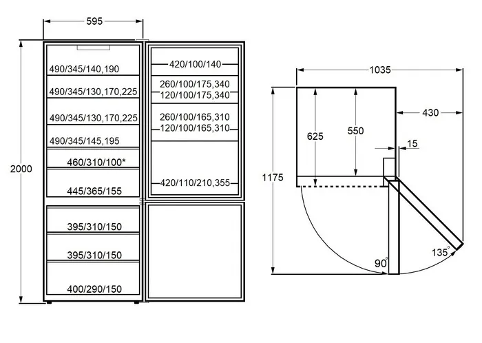 | Габариты (ВхШхГ) | 2000х595х625 мм |