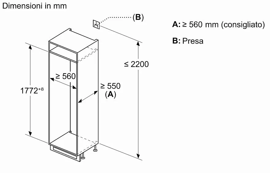 Габариты ниши (ВхШхГ) 1772-1780х560х550 мм