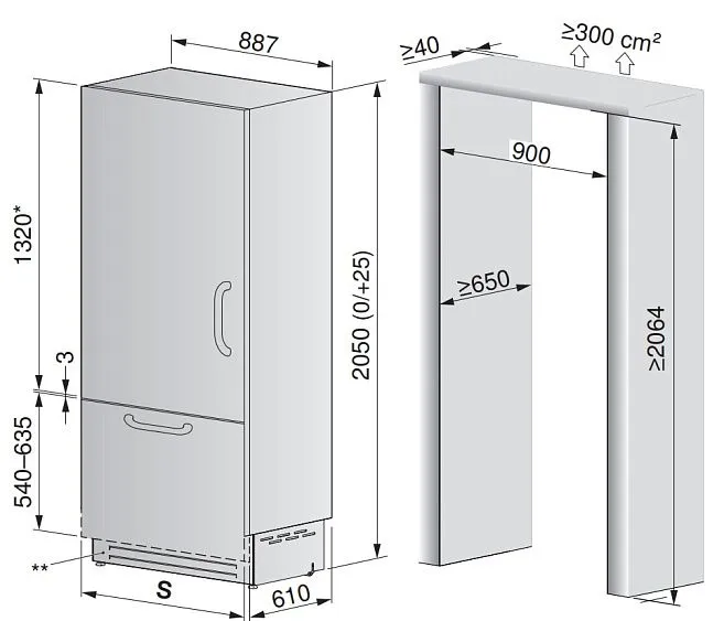 | Габариты ниши (ВхШхГ) | 2064х900х650 мм |