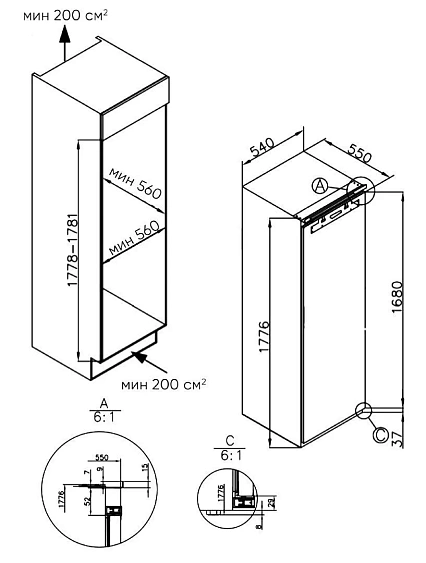 Габариты ниши (ВхШхГ) | 1781x1128x560 мм |