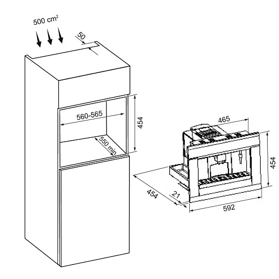 | Габариты ниши (ВхШхГ) | 454х560-565х550 мм |