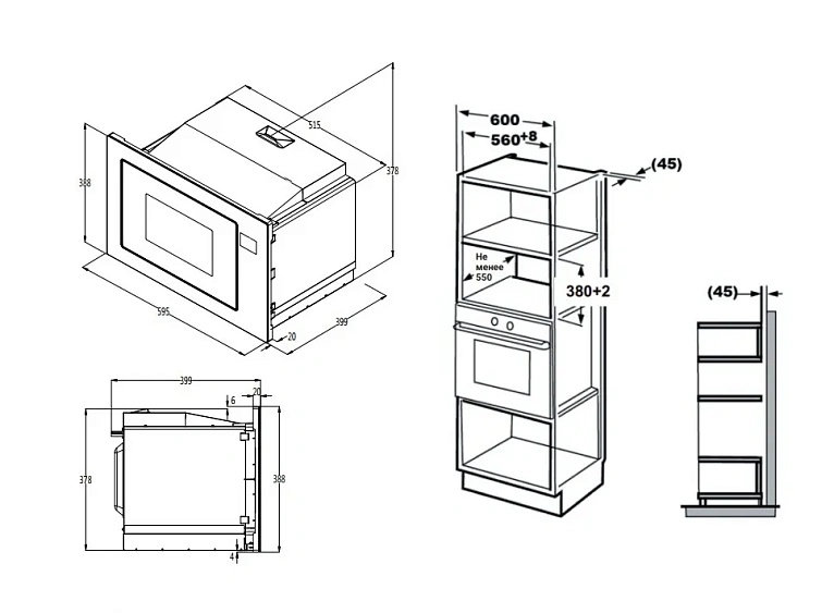| Габариты ниши (ВхШхГ) | 380-382х560-568х550 мм |