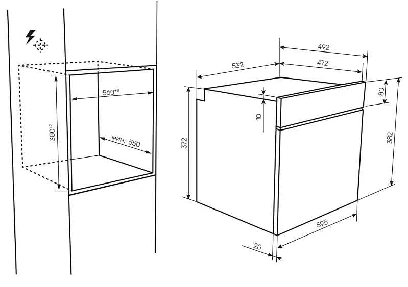 | Габариты ниши (ВхШхГ) | 380-382х560-568х550 мм |