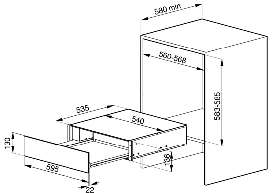 | Габариты ниши (ВхШхГ) | 136х568х580 мм |
