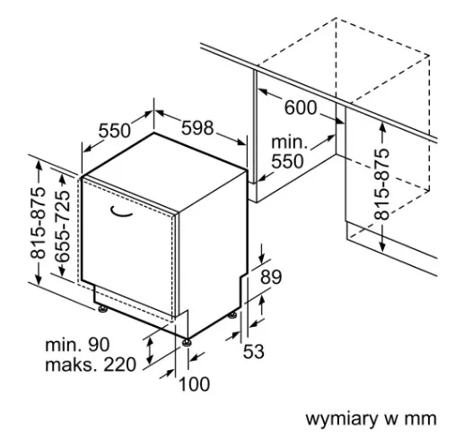 Габариты ниши (ВхШхГ) 815-875х600х550 мм