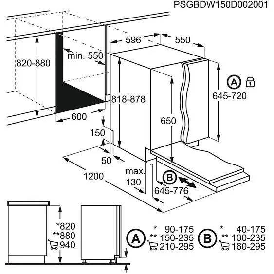 | Габариты ниши (ВхШхГ) | 820-880х600х550 мм |