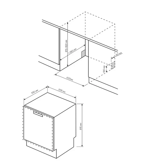 | Габариты ниши (ВхШхГ) | 820х600х580 мм |