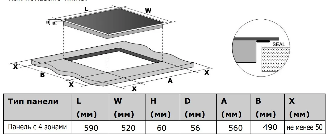 Габариты ниши (ВхШхГ) | 56х560х490 мм |