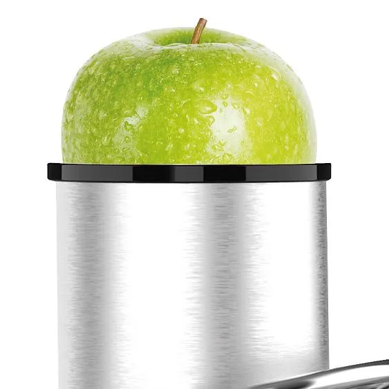 | Конструктивные особенности | широкий желоб под целый плод с диметром загрузочного отверстия 85 мм, фильтр из высококачественной нержавеющей стали, металлический фиксатор крышки, прозрачная крышка позволяет контролировать рабочий процесс, максимально простая сборка, легкий уход |