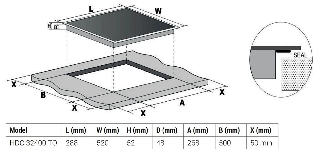 | Габариты ниши (ВхШхГ) | 48х268х500 мм |