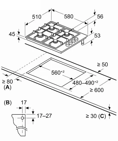 | Тип | газовая варочная поверхность |
