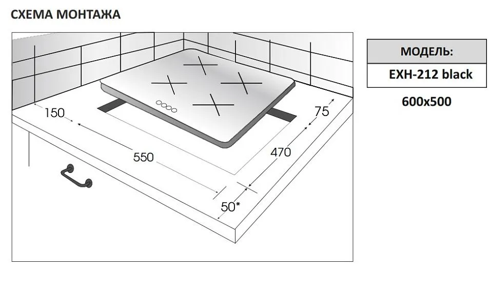 | Габариты ниши (ВхШхГ) | 55х550х470 мм |
