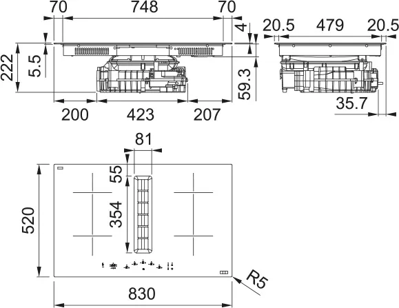 Габариты (ШхГхВ) 830х520х222 мм