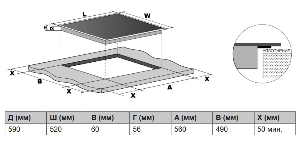 Габариты встраивания (ШхГ) | 560х490 мм |