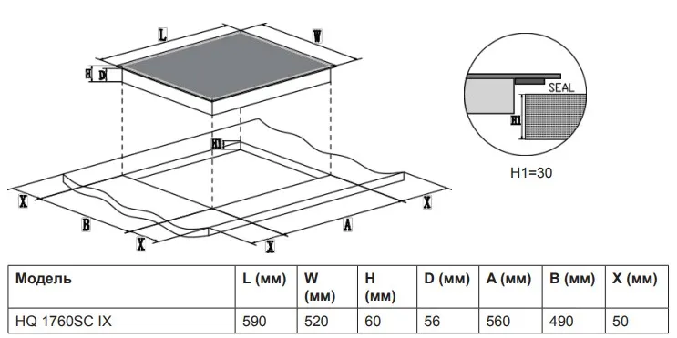 | Тип | индукционная варочная поверхность |