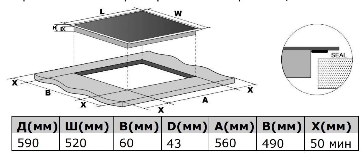 | Габариты ниши (ВхШхГ) | 43х560x490 мм |