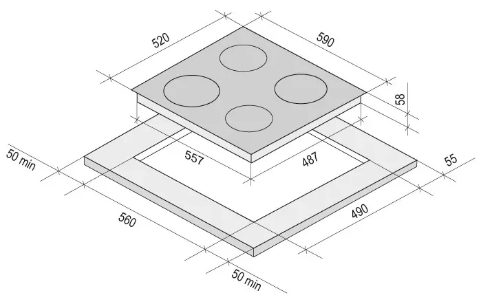 | Габариты ниши (ВхШхГ) | 35х560х490 мм |