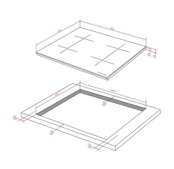 | Габариты ниши (ВхШхГ) | 58х560х490 мм |