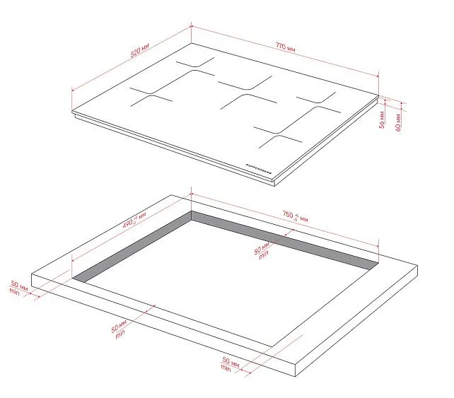 | Габариты ниши (ВхШхГ) | 60х750х490 мм |