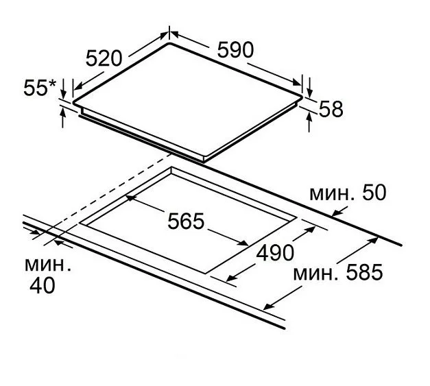 Габариты встраивания (ШхГ) | 565х490 мм |