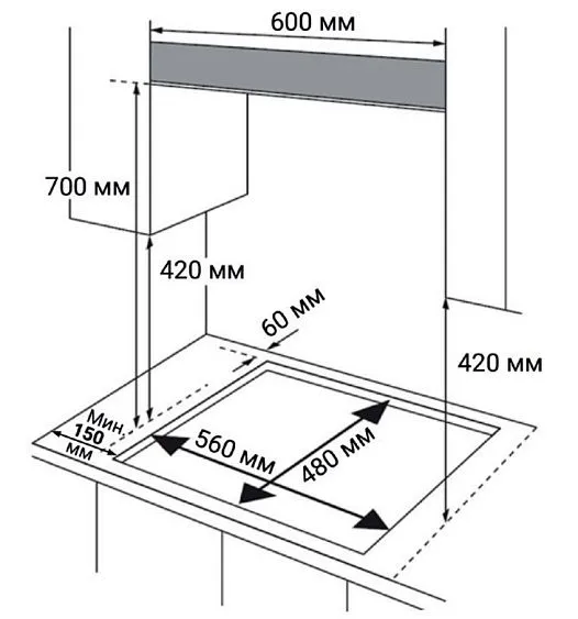 | Габариты ниши (ВхШхГ) | 40х560х480 мм |