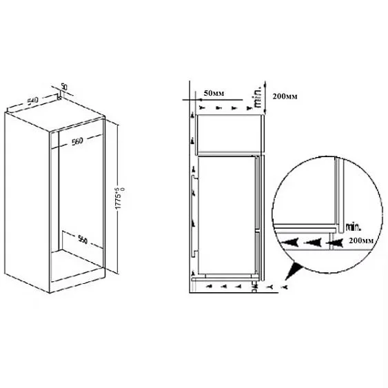 | Габариты встраивания (ВхШхГ) | 1775х560х550 мм |