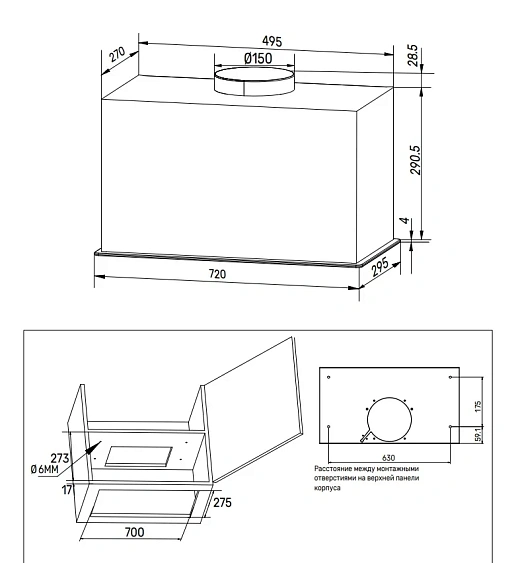 Тип встраиваемая вытяжка