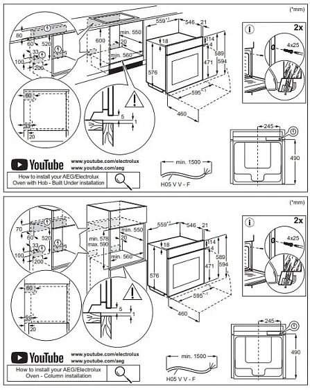 | Габариты ниши (ВxШxГ) | 578-590/600х560х550 мм |
