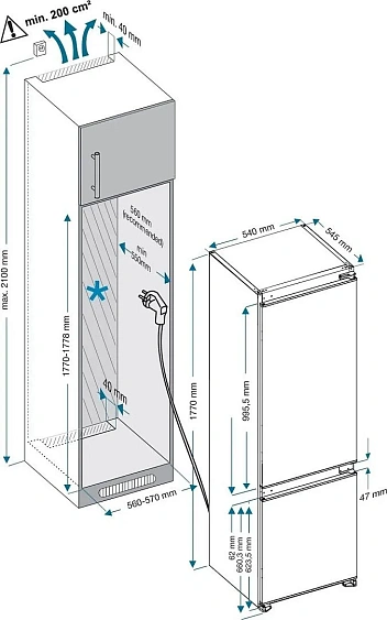 Габариты ниши (ВхШхГ) 1770-1778х560-570х550 мм