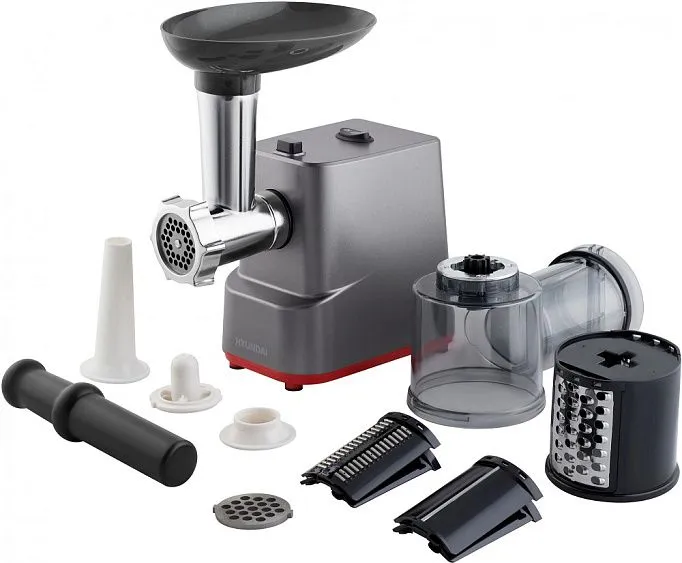 | Комплектация | насадка для приготовления домашних колбас, насадка для кеббе, толкатель, диски с отверстиями диаметром 5/7 мм, большая камера шинковки+3 насадки-шинковки |