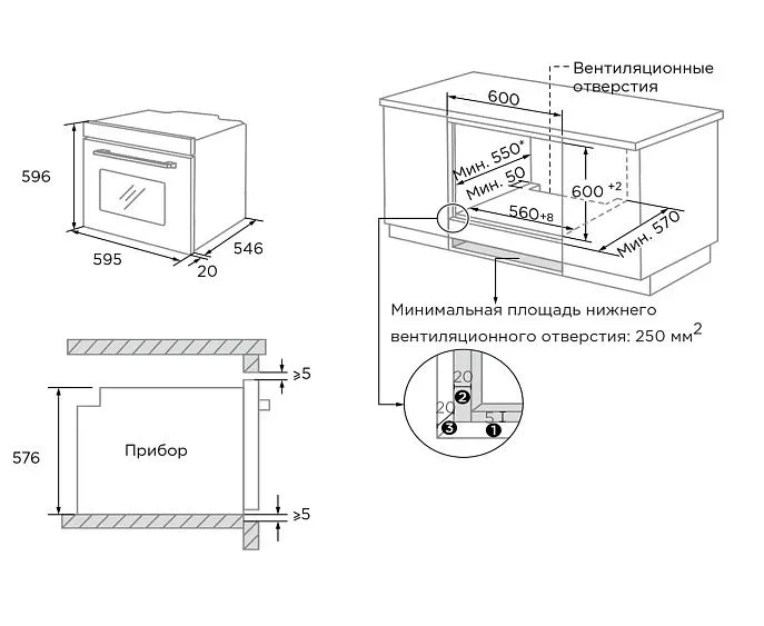| Габариты встраивания (ВхШхГ) | 600x560x570 мм |