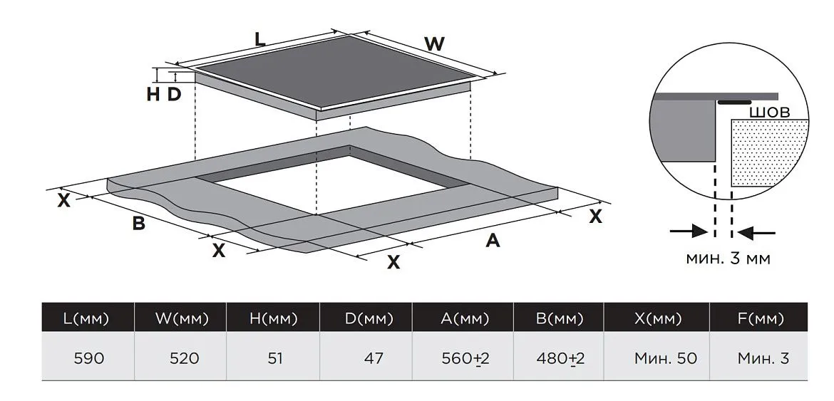 Габариты встраивания (ШхГ) 560х480 мм
