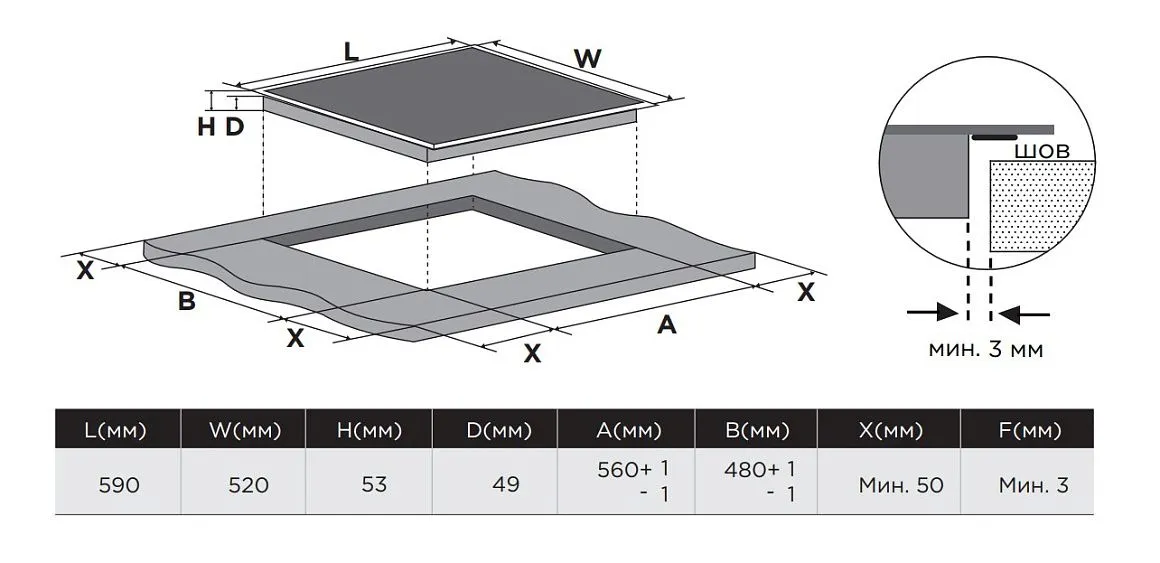 | Габариты ниши (ШхГ) | 560х480 мм |