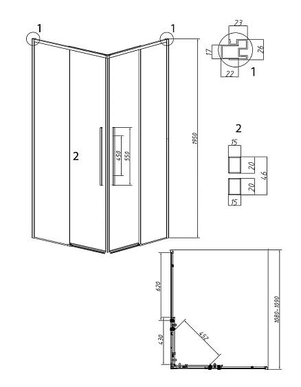 | Тип | 1/2 душевого ограждения |